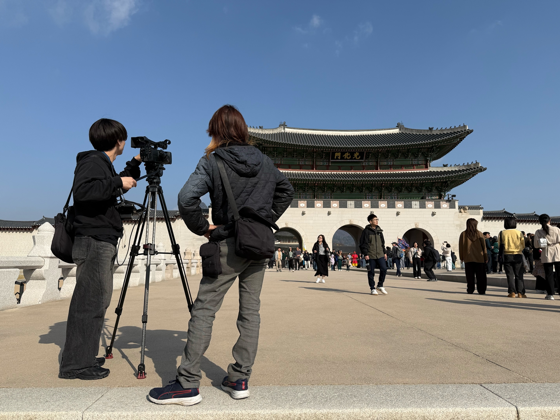 市場に行って!、美味しいものを食べて!、観光地の景福宮 正門前で仲良く2ショットを撮って!・・・