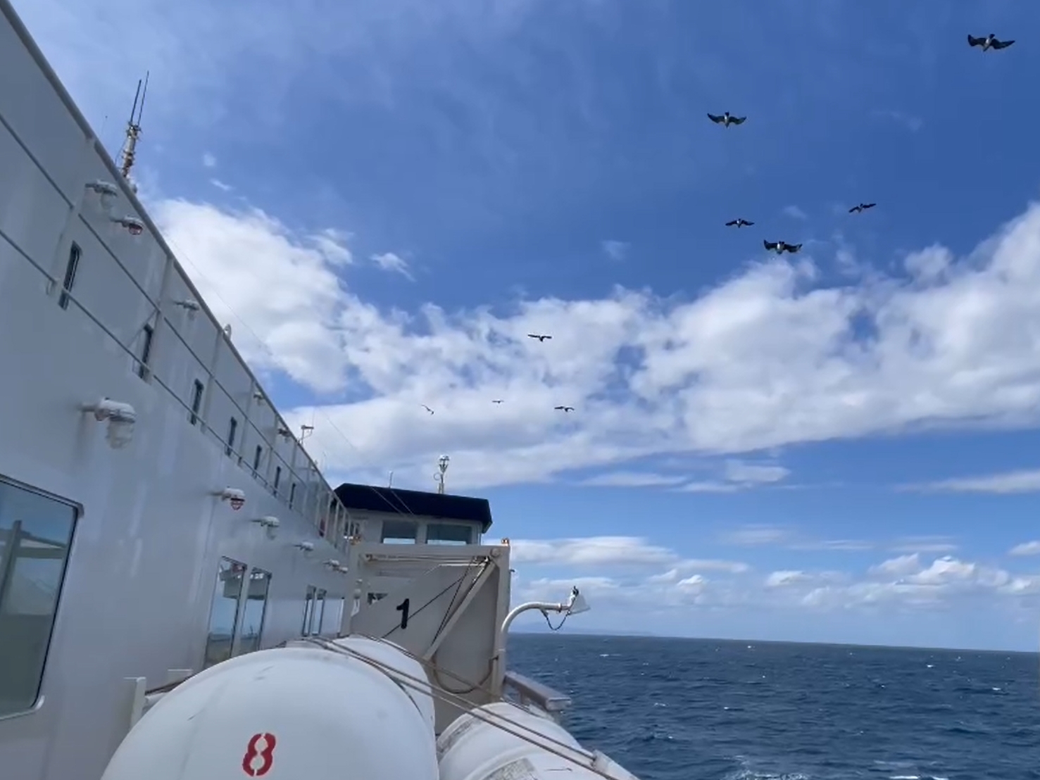 2時間半の船旅、監督は甲板でソフトクリームを食べて気分転換!